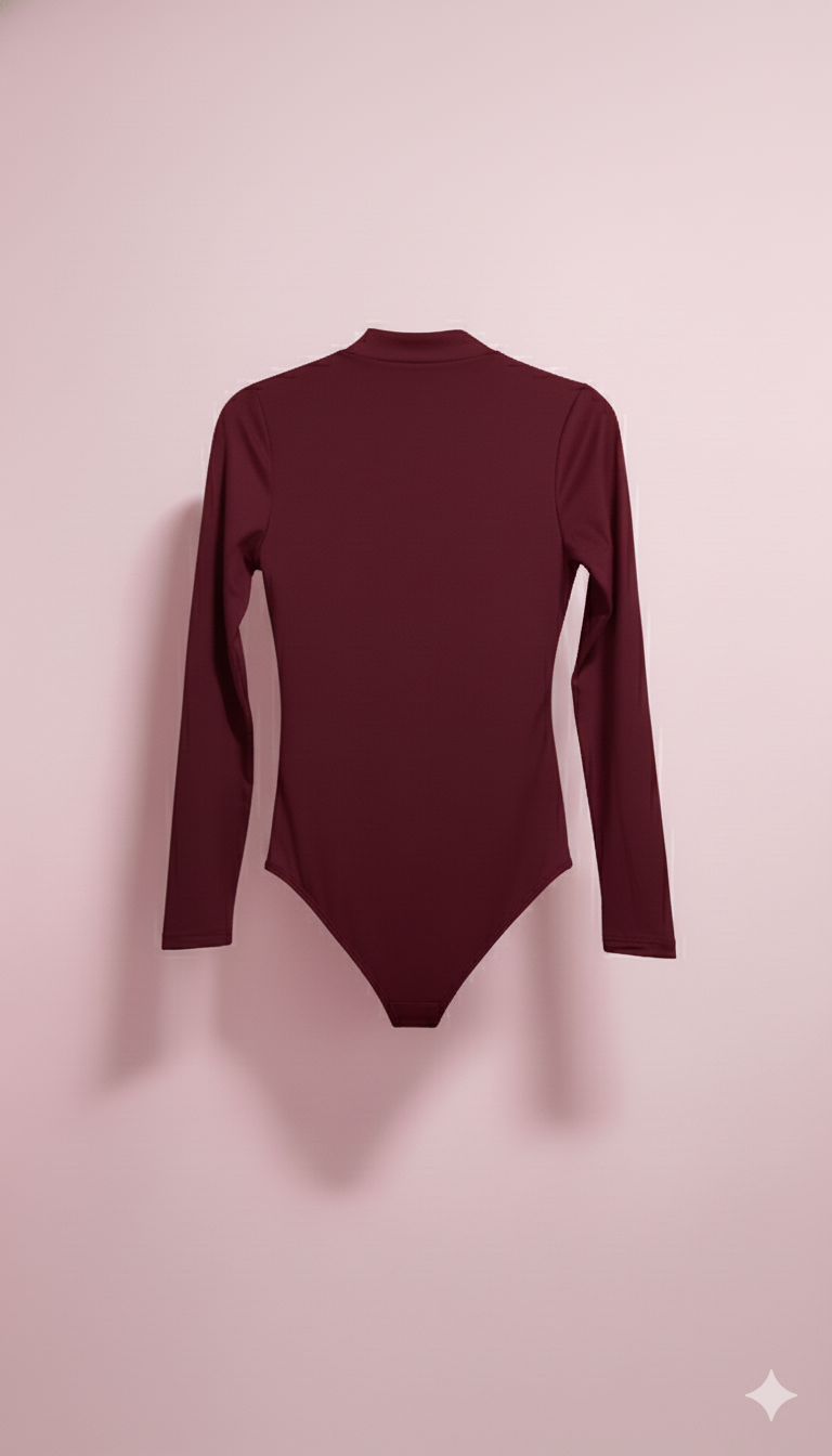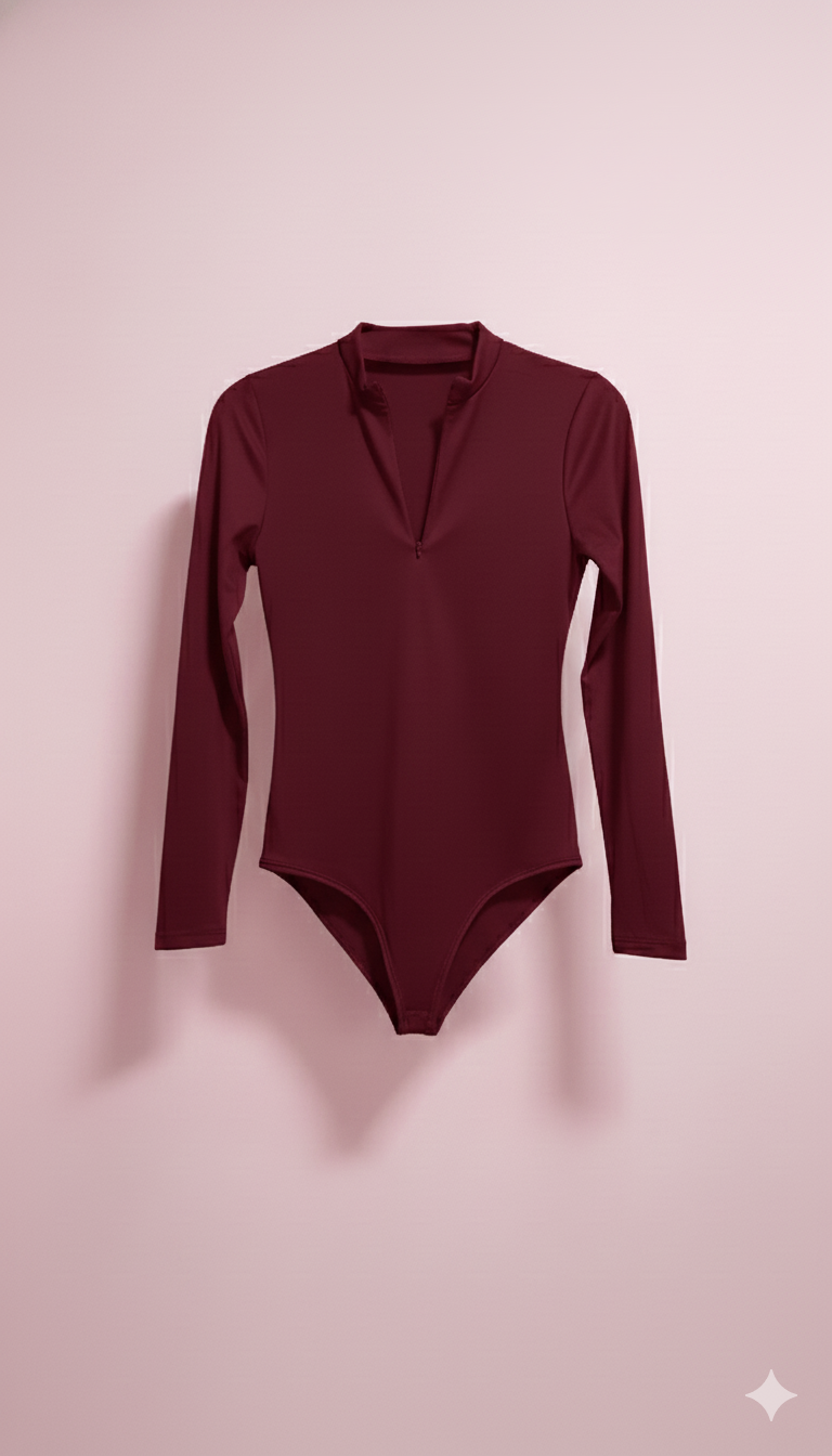 BodySuits de manga larga y escote en “V” pronunciado con cierre, cuello mandarin o simulado.